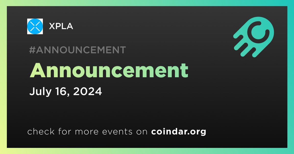 XPLA will make an announcement on July 16th at 08:00 UTC.