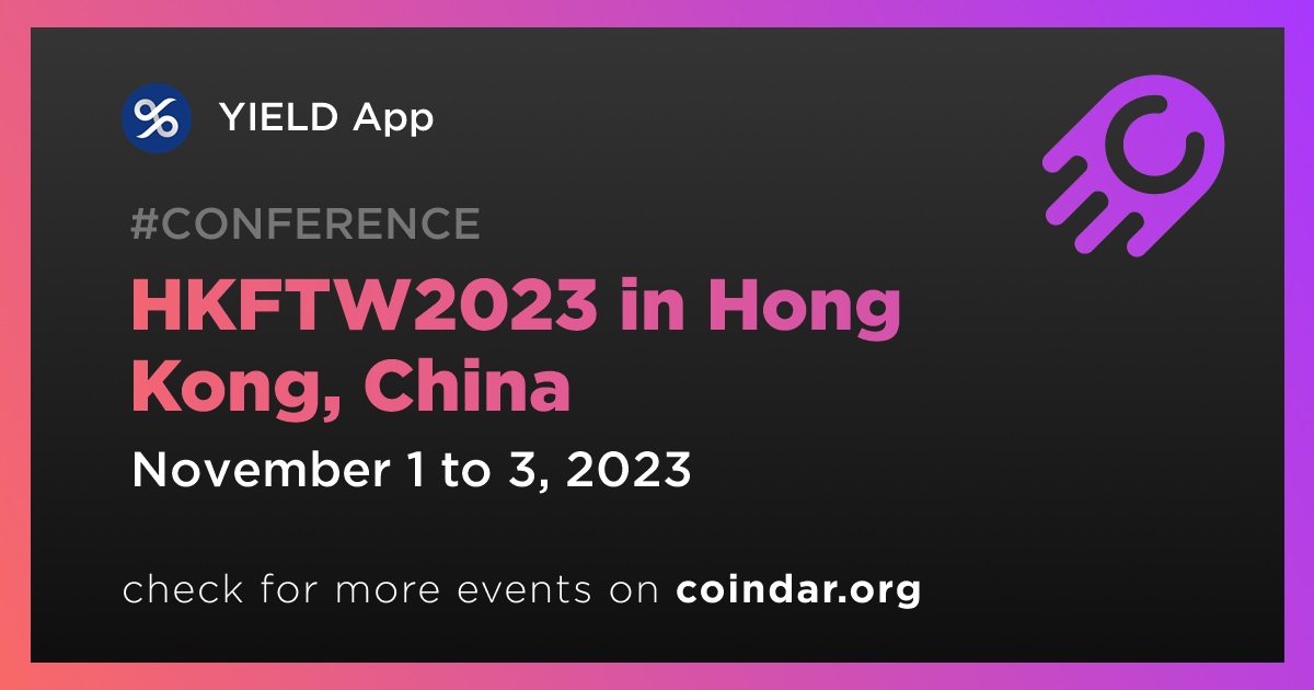 YIELD App is set to participate in the upcoming HKFTW2023 event, which will take place in Hong Kong. The event is scheduled to run from November 1 to November 3.