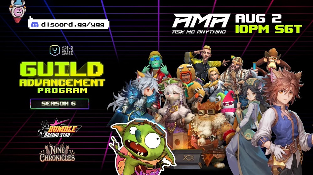 Yield Guild Games will host an AMA on Discord featuring the teams behind Nine Chronicles and Rumble Racing Star. The event is scheduled to take place on August 2nd at 14:00 UTC.