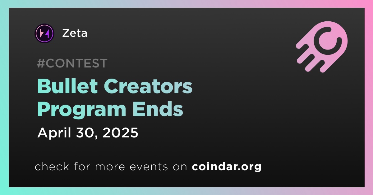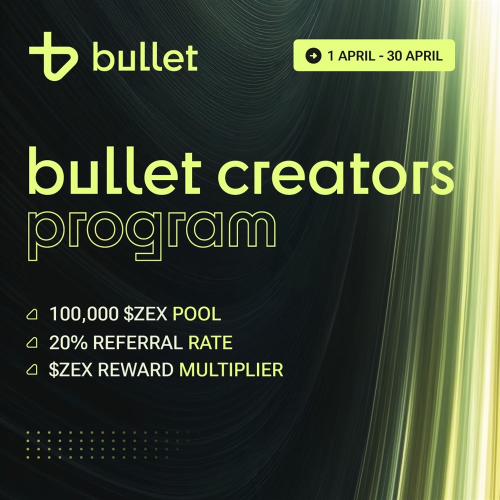 Zeta has announced the launch of the Bullet Creators Program, scheduled to run from April 1 to April 30. The initiative offers 100,000 ZEX in rewards, including trading multipliers and referral bonuses.