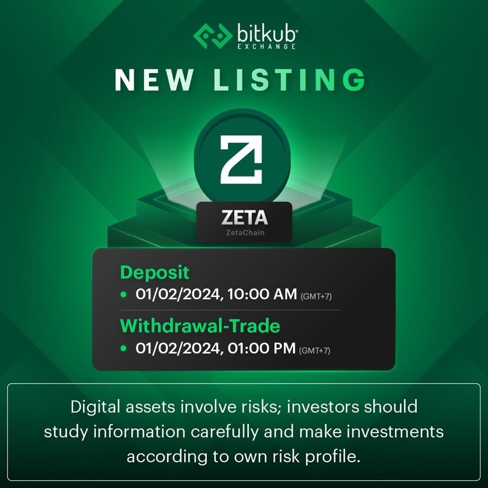 Bitkub will list ZetaChain (ZETA) on February 1st.