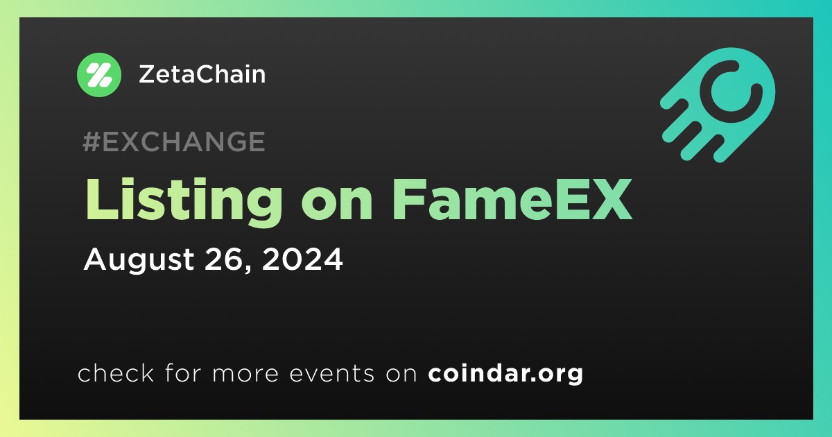 FameEX will list ZetaChain (ZETA) on August 26th at 10:00 UTC.