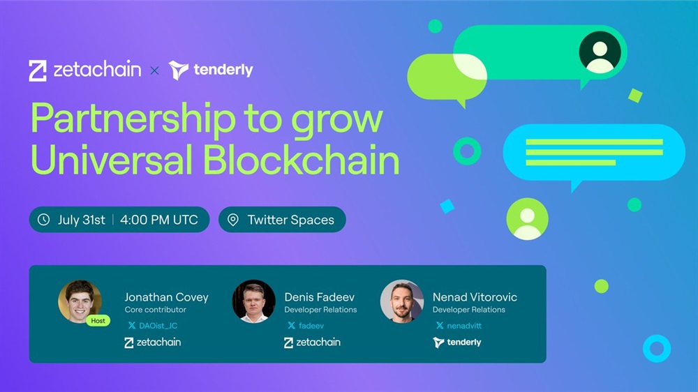 ZetaChain will host an AMA on X with Tenderly on July 31st at 16:00 UTC.