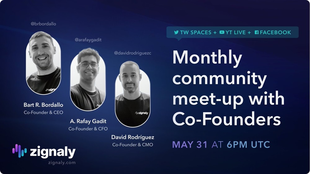 Catch #Zignaly founders @brbordallo, @ARafayGadit & @davidrodriguezc LIVE in "Community Meet-Up" next week!