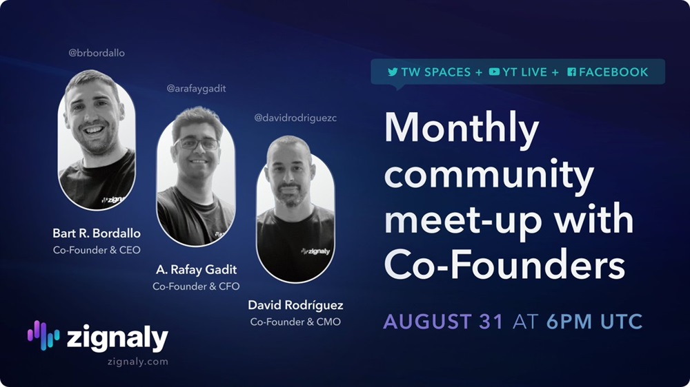 Catch #Zignaly founders Tole, Abdul Rafay & David Rodríguez LIVE in "Community Meet-Up" this week, on thursday!