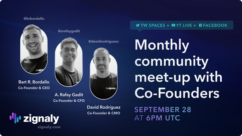 Zignaly’s founders, David Rodríguez, Rafay Gadit, Bart Bordallo will host an AMA on X on September 28th at 6 PM UTC. The agenda for the meeting includes a monthly round-up, discussion on recent developments, market trends, and what to look for and expect in the future.