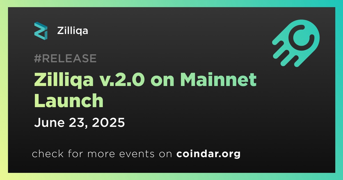 Zilliqa will launch the Zilliqa v.2.0 mainnet on June 23rd.