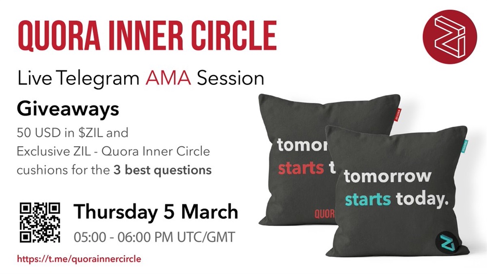 For tomorrow's #AMA, the top 3 questions asked will receive $50 in $ZIL. Each winner will also get a custom made #Zilliqa - #Quora Inner Circle cushion. With this soft exclusive cushion you will be able to enjoy your $crypto experience even more, so make sure to win one! 🥉 - MS