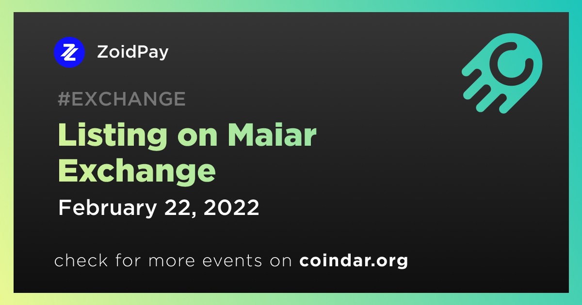 ZoidPay ZPAY: Listing on Maiar Exchange