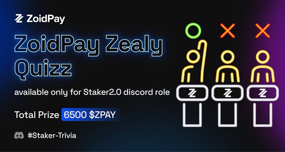 ZoidPay is organizing a Trivia quiz on the 14th of August, at 17:00 UTC. The event will take place on their Discord platform. This is an opportunity for ZoidStakers and Zealy enthusiasts to engage in a fun and interactive session.