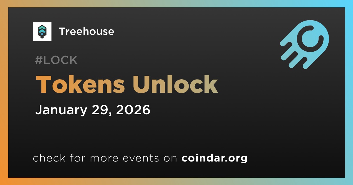 Treehouse will unlock 85,730,000 TREE tokens on January 29, constituting approximately 39.41% of the currently circulating supply.