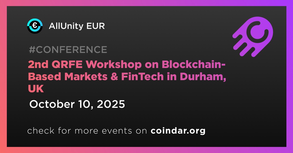 AllUnity EUR will be represented by chief technology and operating officer Peter Grosskopf at the 2nd QRFE workshop on Blockchain-based Markets & FinTech, scheduled for October 10th at Durham University Business School in Durham.