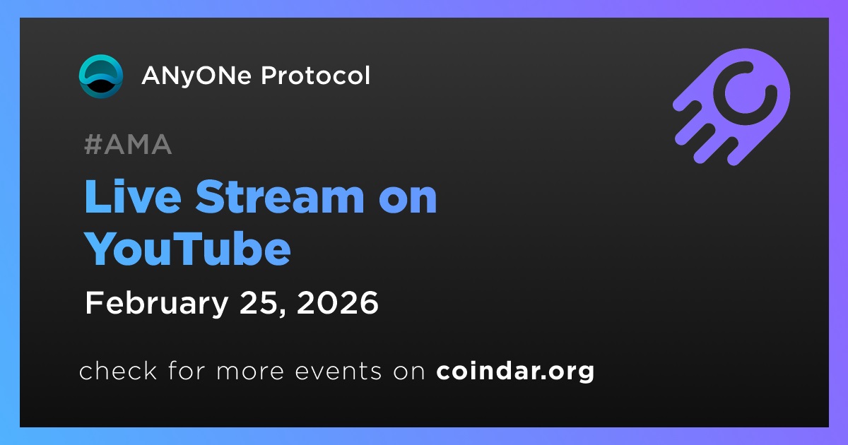 ANyONe Protocol will host an AMA on YouTube on February 25 at 17:00 UTC, coinciding with the project’s third anniversary. The live-streamed session will feature multiple speakers and include additional protocol announcements.