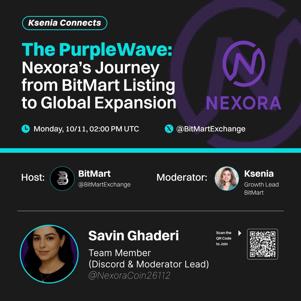 BitMart will host an X Spaces discussion on 10 November at 14:00 UTC, focusing on Nexora’s development following its listing on the exchange.
