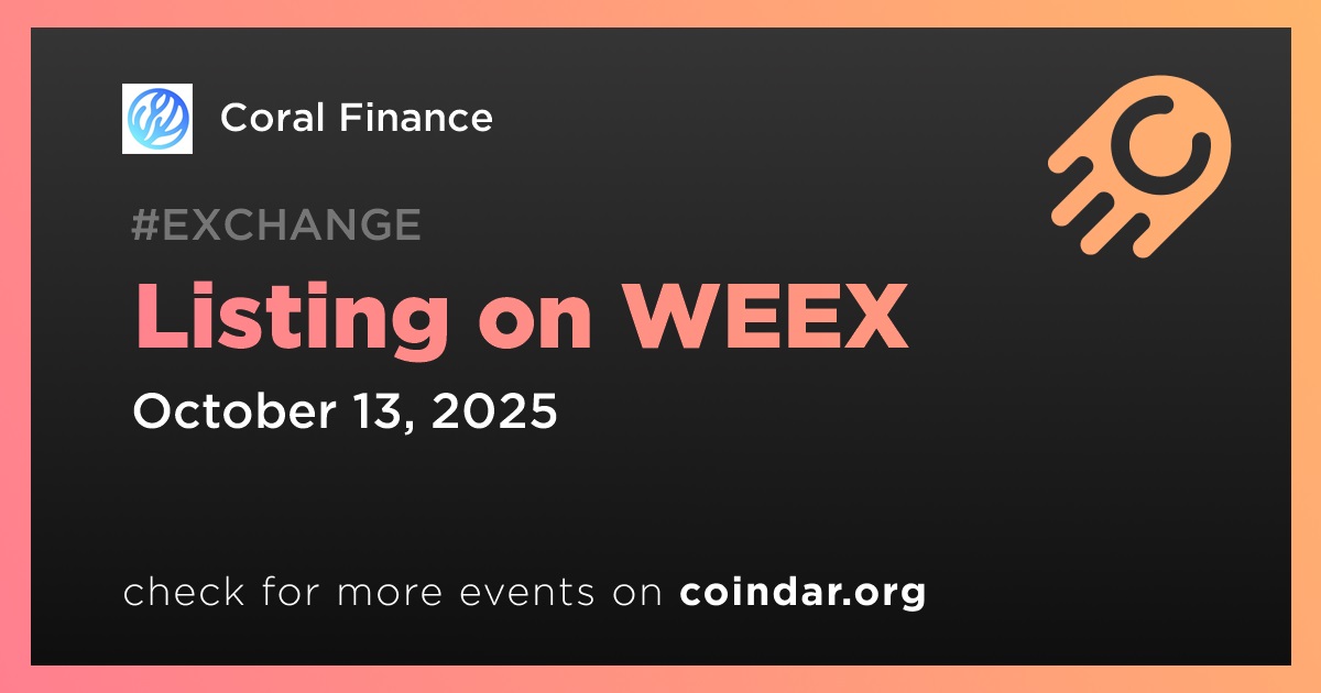 WEEX will be the 1st largest among the exchanges where Coral Finance is listed