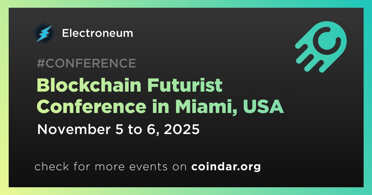 Electroneum will be represented at the Blockchain Futurist Conference in Miami, on November 5–6.
