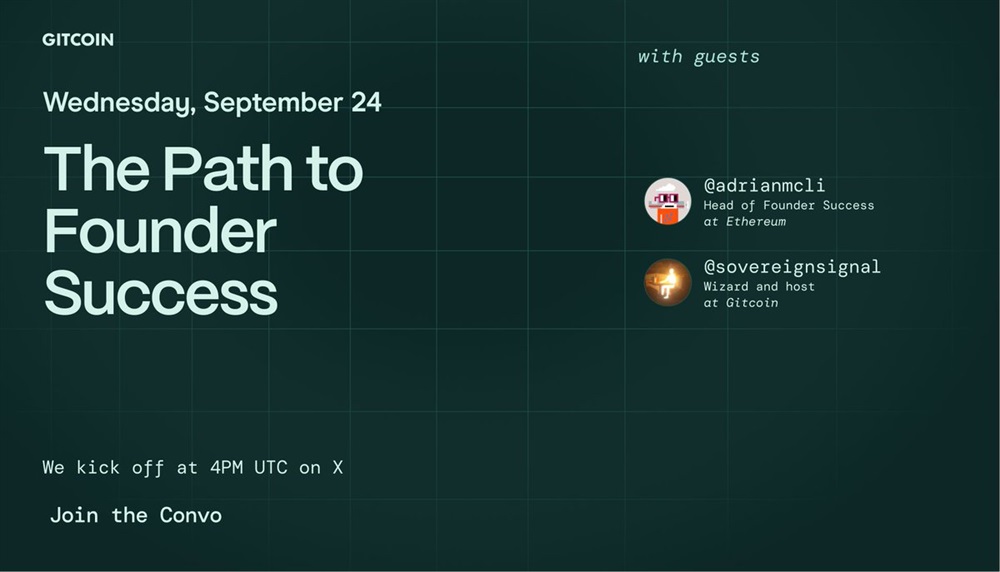Gitcoin will host an AMA on X on September 24th at 16:00 UTC. The session will feature Adrian McLii, Ethereum’s head of founder Success, and will examine practical approaches to supporting builders and scaling the network’s future.