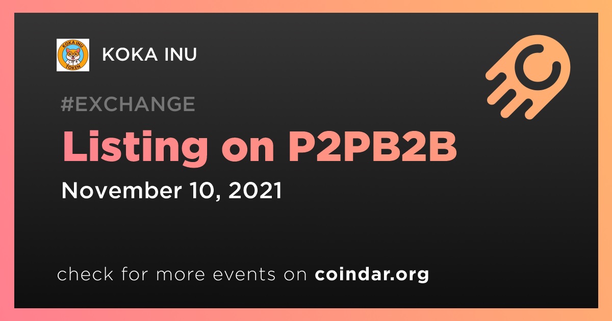 P2B will be the 1st largest among the exchanges where KOKA INU is listed