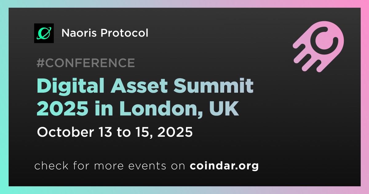 Naoris Protocol will participate in Digital Asset Summit 2025, which will be held in London, from October 13 to 15. The conference is expected to gather industry professionals and policymakers to discuss developments within the digital asset sector.