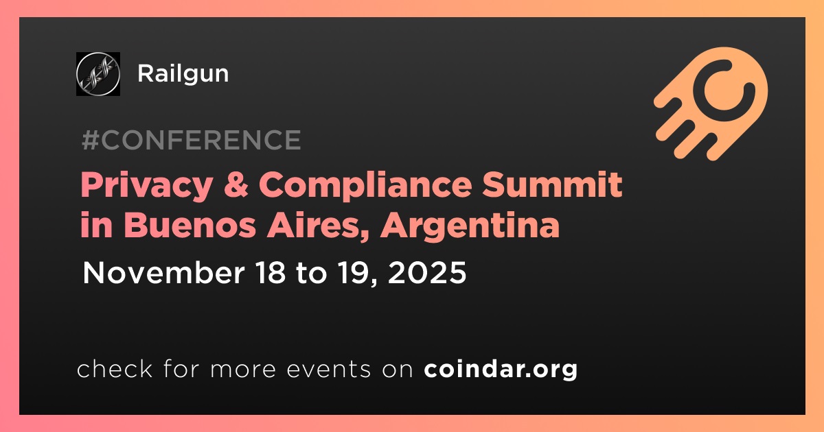 Railgun announces that the Privacy & Compliance Summit, one of five summits within the two-day DeFiConnect programme, is scheduled for November 18–19 in Buenos Aires. The agenda is set to examine themes including Stables, Vaults, Oracles, Privacy and the Universal Staking Day.