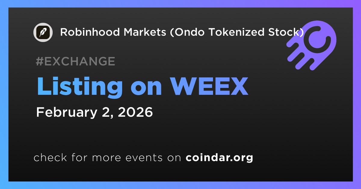 WEEX will list Robinhood Markets (Ondo Tokenized Stock) (HOODON) on February 2.