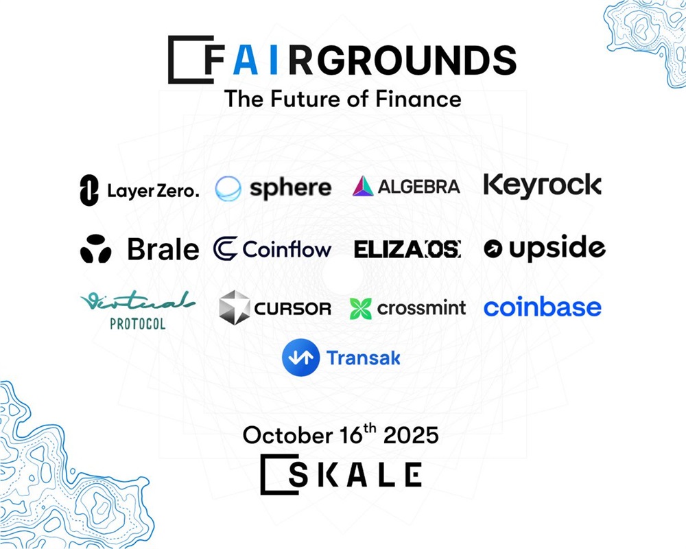 SKALE has announced its first live event, FAIRGROUNDS: The Future of Finance, scheduled to take place on October 16, and will be streamed live on X. The event will bring together leading innovators from the blockchain and tech industries, including representatives from LayerZero, Coinbase, Keyrock, Sphere, Algebra, Brale, and others. FAIRGROUNDS aims to foster open discussions around the evolution of decentralized finance and the technologies shaping the future of the financial ecosystem.