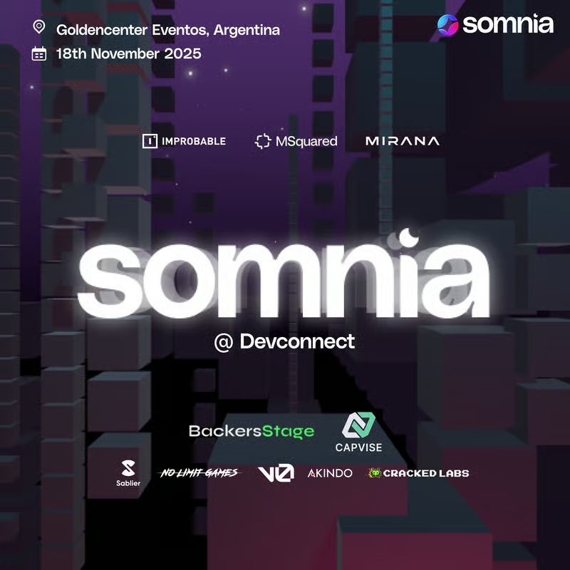 Somnia will hold a side event aligned with Devcon in Buenos Aires on November 18th, commencing at 19:30 UTC. The programme will be streamed on-chain and will involve Akindo, Cracked Labs, Sub0-Polkadot, Capvise, Backers Stage Capital and Sablier.