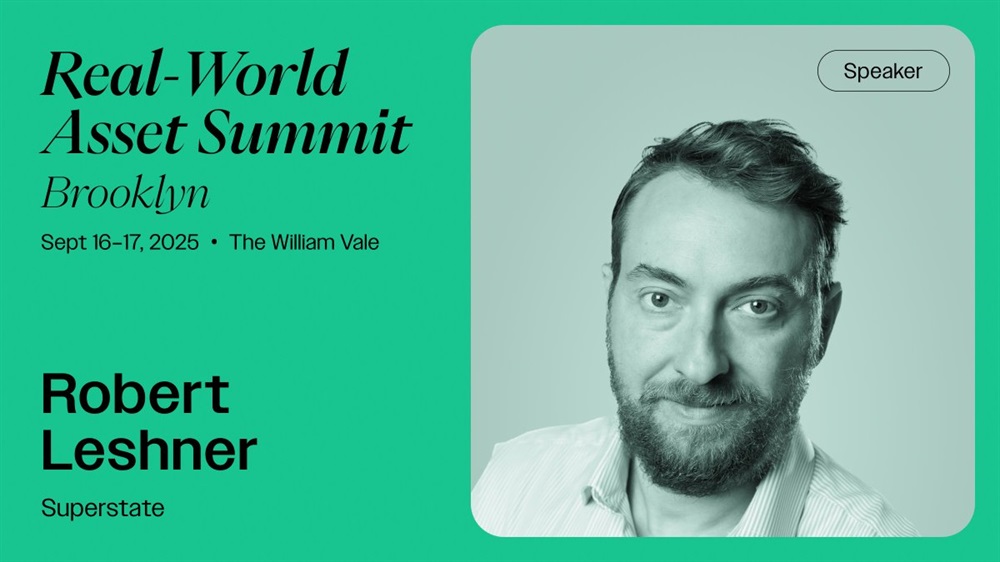 Superstate Short Duration U.S. Government Securities Fund (USTB) CEO and co-founder Robert Leshner will take part in the upcoming Real-World Asset Summit, returning to Brooklyn on September 16–17. The event will gather key figures from capital markets and crypto to discuss the future of tokenized equities. Leshner will contribute to conversations on bridging traditional finance with blockchain innovation.