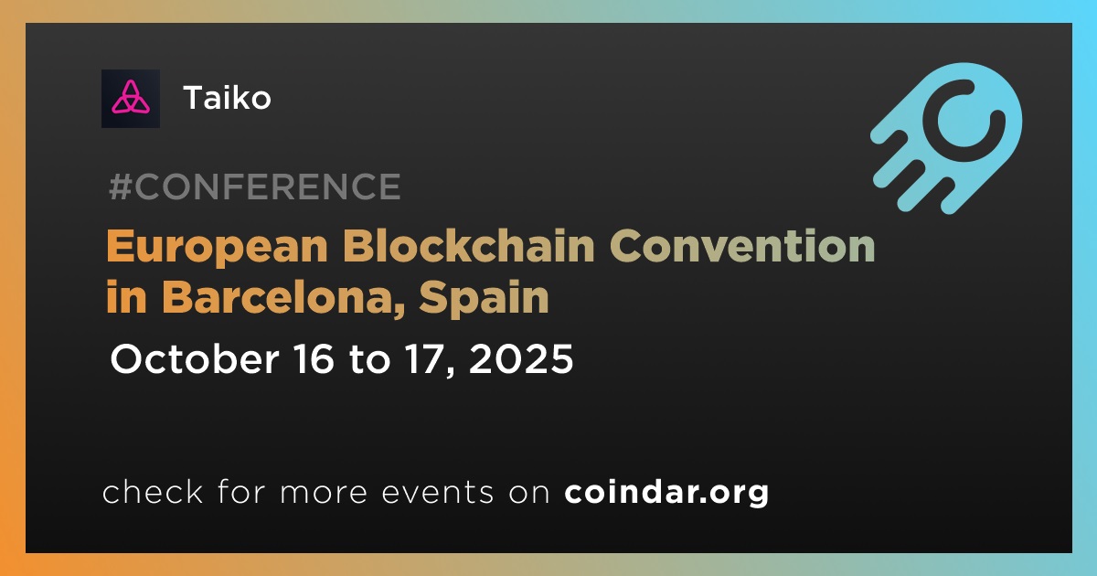 Taiko has announced that its chief operating officer will attend the European Blockchain Convention, scheduled to take place in Barcelona, on October 16–17.