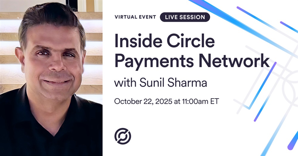 Join Circle’s Sunil Sharma on oct 22 for a deep dive into how financial institutions are using CPN to unlock fast, compliant, stablecoin-powered settlement.