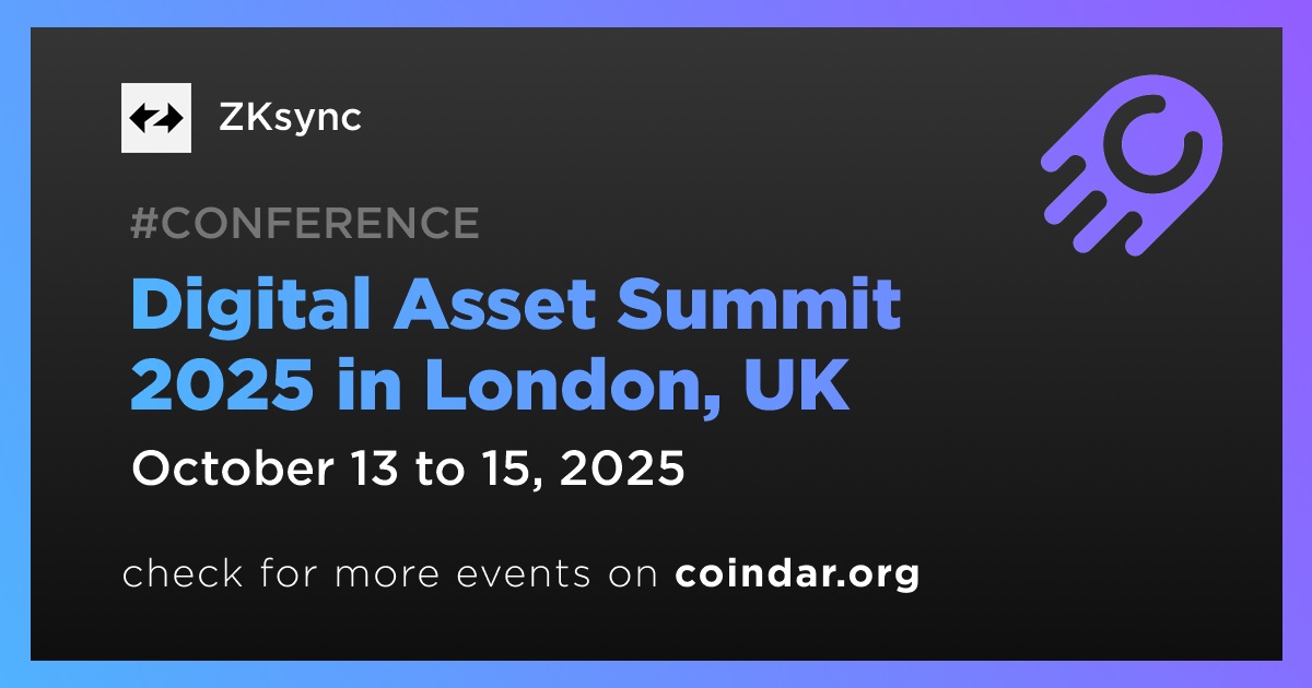 ZKsync will participate at the Digital Asset Summit 2025, scheduled to take place in London on October 13th-15th.