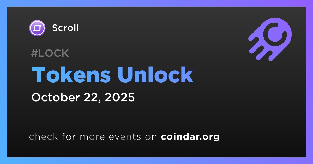 Scroll desbloqueará 83.500.000 tokens SCR el 22 de octubre, lo que constituye aproximadamente el {Supply}% del suministro actualmente en circulación.