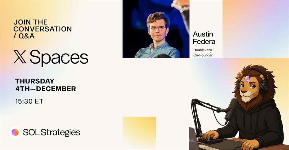 DoubleZero organizará un AMA sobre X el 4 de diciembre a las 20:30 UTC con el director de tecnología Max Kaplan y el cofundador Austin Federa, centrándose en estrategias para optimizar el rendimiento del validador de Solana y el papel de las herramientas de DoubleZero en la red.