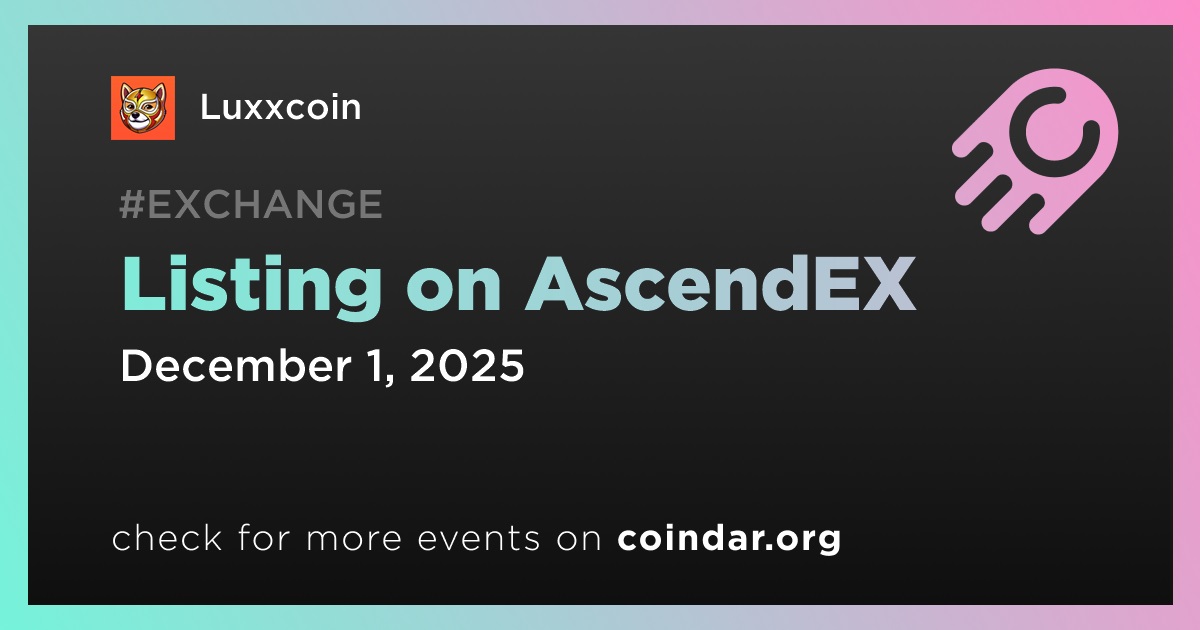Ililista ng AscendEX ang LuxxCoin (LUX) kasama ang LUX/USDT trading pair. Ang mga deposito ay bukas sa Nobyembre 30 sa 09:00 UTC, ang kalakalan ay magsisimula sa Disyembre 1 sa 09:00 UTC, at ang mga withdrawal ay magsisimula sa Disyembre 2 sa 09:00 UTC.