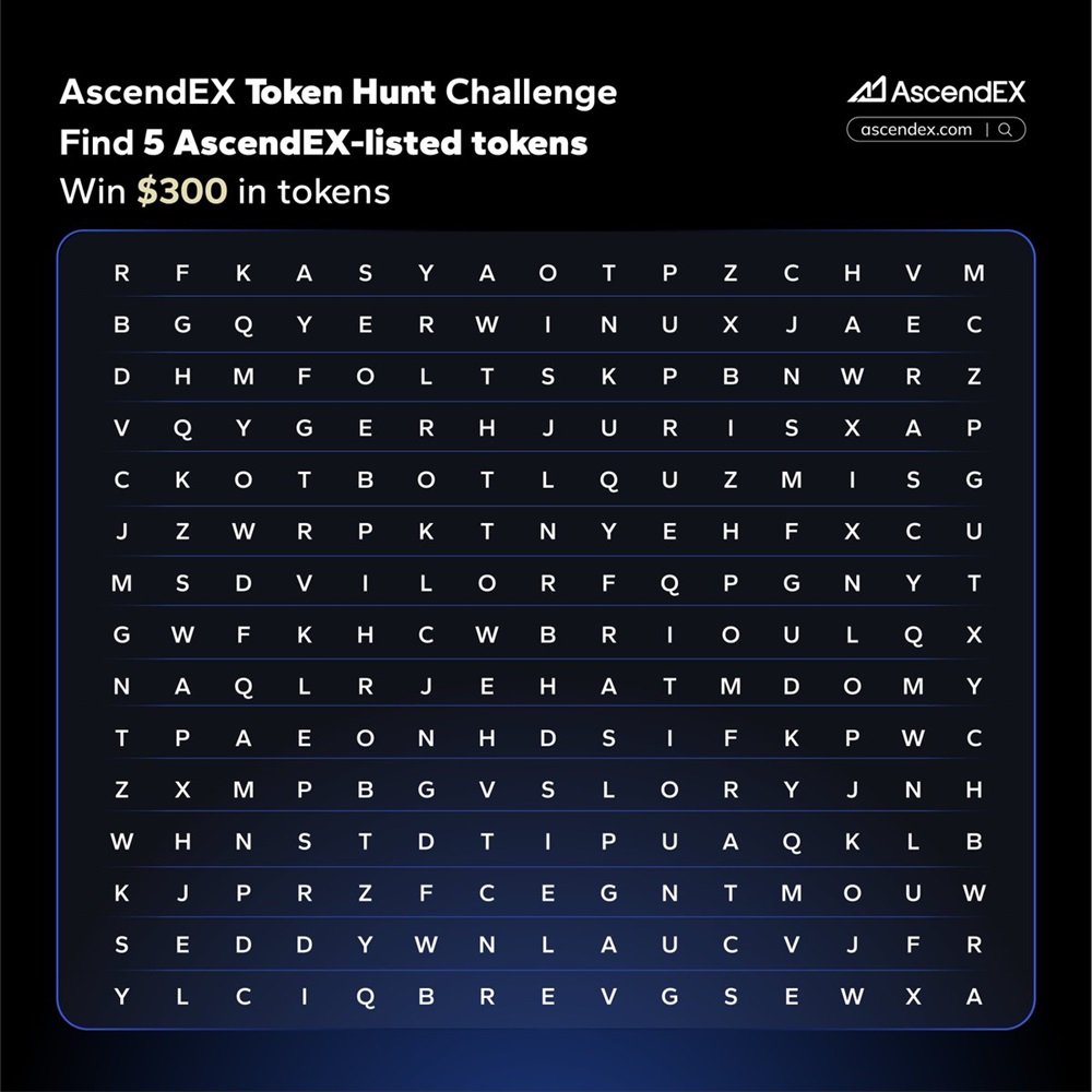 AscendEX는 1월 29일부터 2월 5일까지 토큰 찾기 챌린지를 진행합니다. 참가자들은 챌린지 그리드 안에 숨겨진 AscendEX 상장 토큰을 찾아 보상을 획득할 기회를 얻게 됩니다. 총 30명의 당첨자에게는 300달러 상당의 토큰이 지급됩니다. 참여 방법은 챌린지 과제를 완료하고 캠페인 기간 내에 참가 신청서를 제출하는 것입니다.