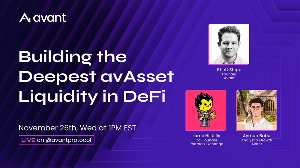 Avant USD는 11월 26일 18:00 UTC에 X에 대한 AMA를 주최할 예정이며, 브리핑에서 최고경영자 Rhett Shipp이 AVAX 포인트 플랫폼에서 Pharaoh와의 통합에 대해 자세히 설명할 예정입니다.