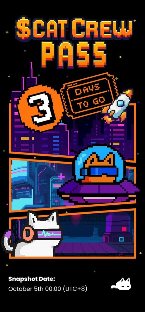 CAT 터미널은 CAT 크루 패스 에어드랍을 발표했습니다. 온체인 스냅샷은 10월 4일로 예정되어 있으며, 배포는 10월 31일 이전에 진행됩니다. 참여 자격은 Alien Cat, Rocket Cat, AI Cat 플레이어이며, CAT 크루에서 최소 10,000 CAT를 달성한 플레이어여야 합니다. 패스는 무료로 배포되며, 독점 유틸리티와 새로운 게임플레이 기능을 잠금 해제할 수 있습니다.