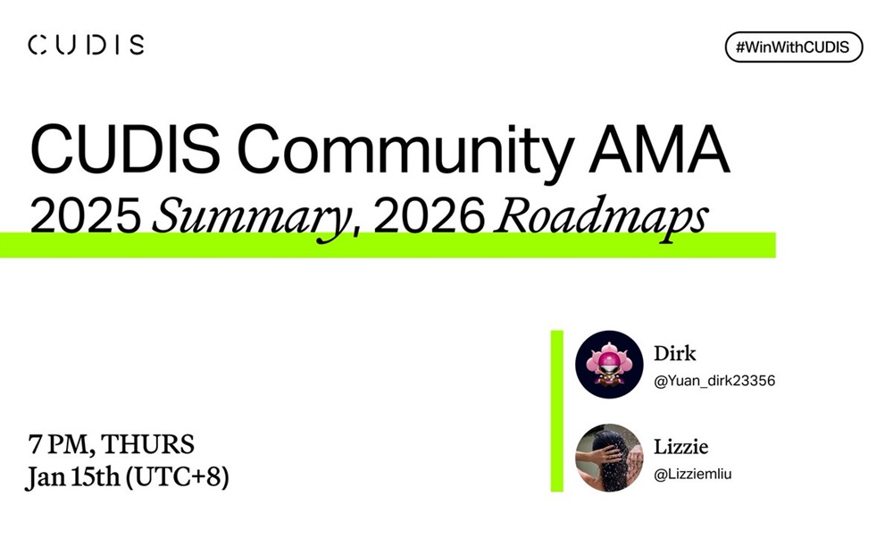 Cudis는 1월 15일 11:00 UTC에 X에 대한 AMA(Ask Me Anything)를 진행할 예정입니다.