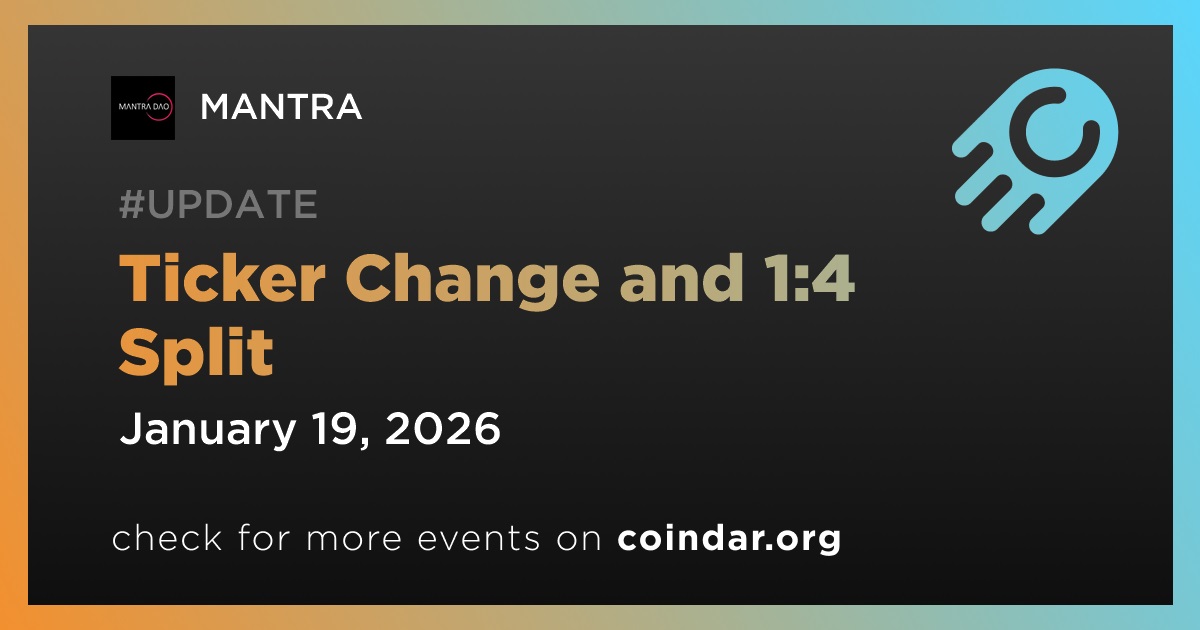 MANTRA는 2026년 1월 19일, 목표 블록 11,888,888에서 티커를 OM에서 MANTRA로 변경하고 1:4 비율로 코인을 분할하는 코인 업그레이드를 진행할 예정입니다.