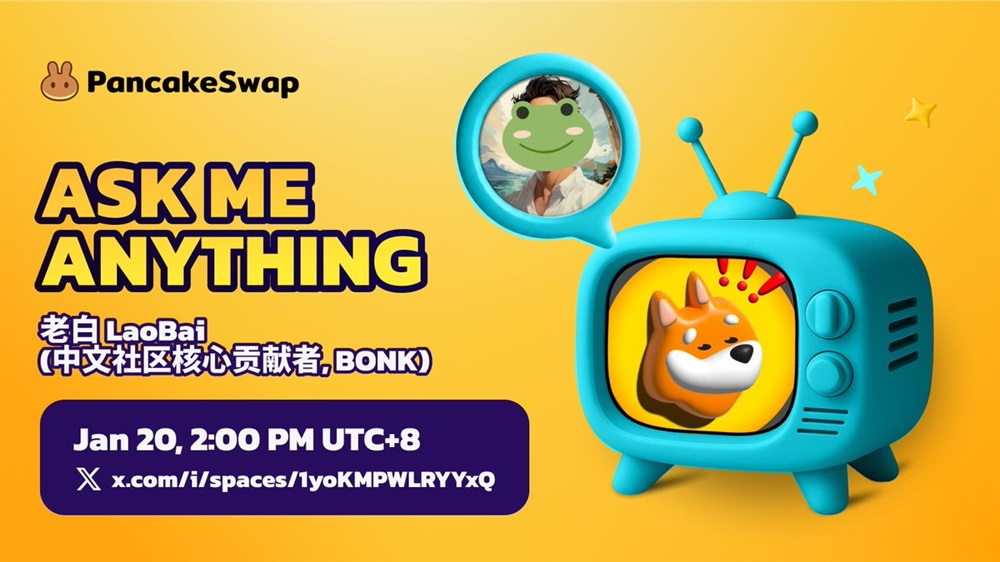 PancakeSwap은 1월 20일 06:00 UTC에 BONK와 함께 X에 대한 AMA(Ask Me Anything) 세션을 진행할 예정이며, 최근 개발 사항, 생태계 발전 및 커뮤니티 활동에 초점을 맞출 것입니다.