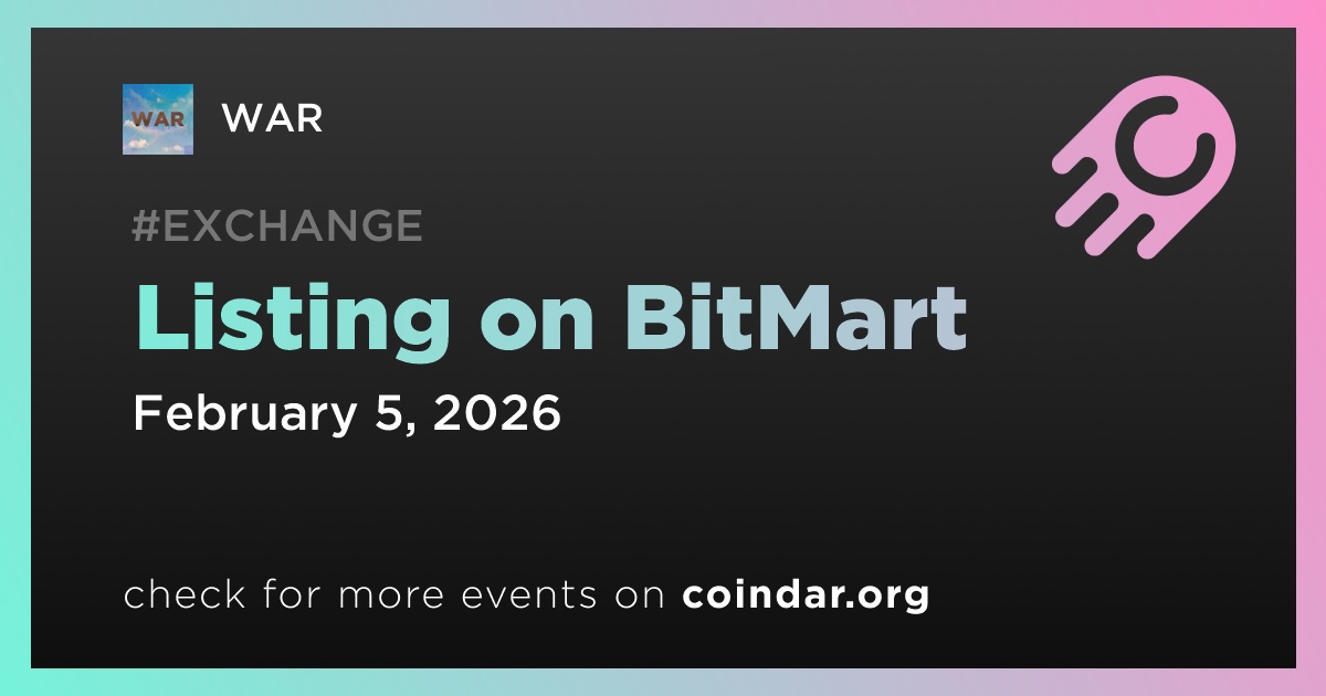 BitMart는 2월 5일에 WAR/USD1 거래쌍으로 WAR를 상장할 예정입니다.