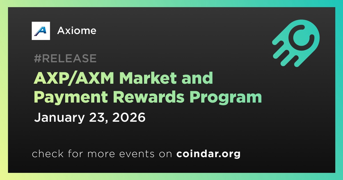 A Axiome confirmou o lançamento do mercado AXP/AXM, agendado para 23 de janeiro às 12:00 UTC. A atualização posiciona o AXP como um token focado em pagamentos, com o objetivo de conectar a infraestrutura DeFi a casos de uso de pagamentos no mundo real.
