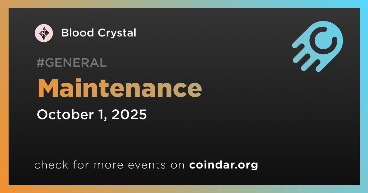 O Cristal de Sangue passará por uma manutenção programada para uma atualização de versão em 1º de outubro, das 5h às 7h UTC. O operador informa que o horário de término pode mudar.