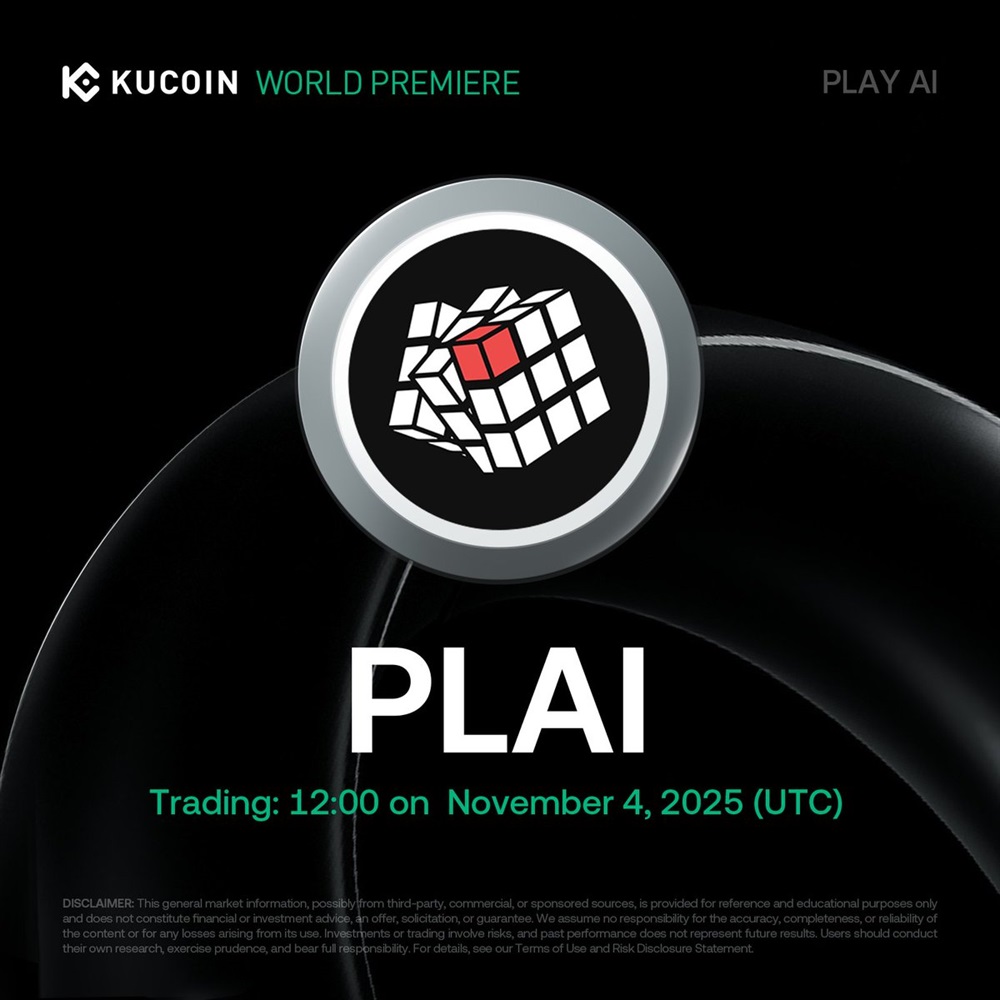 A Play AI será listada na KuCoin, com a negociação do par PLAI/USDT programada para começar às 12:00 UTC do dia 4 de novembro.