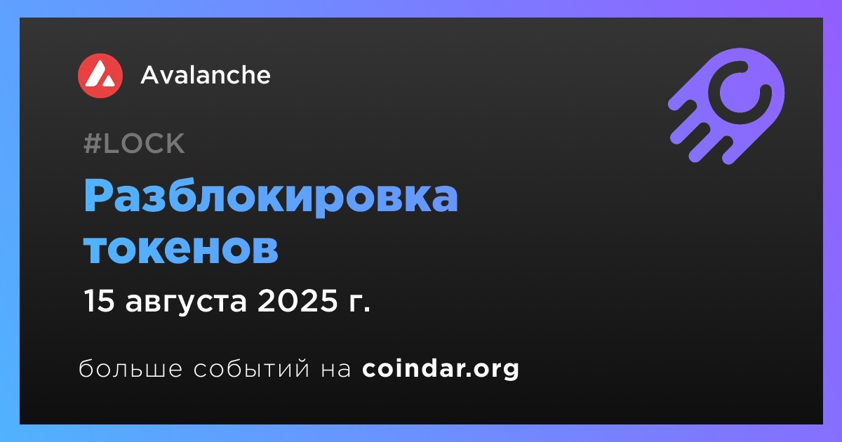 15 августа Avalanche разблокирует 1 670 000 токенов AVAX, что составляет примерно 0,40% от общего объема токенов в обращении.