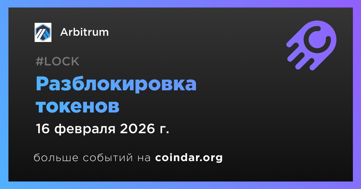 16 февраля Arbitrum разблокирует 92 650 000 токенов ARB, что составляет примерно 1,82% от общего объема токенов в обращении.