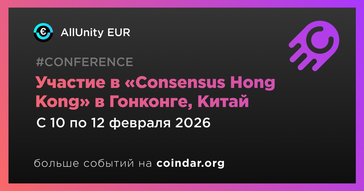 AllUnity EUR примет участие в конференции «Consensus Hong Kong 2026», организованной CoinDesk. Мероприятие пройдет в Гонконге с 10 по 12 февраля.