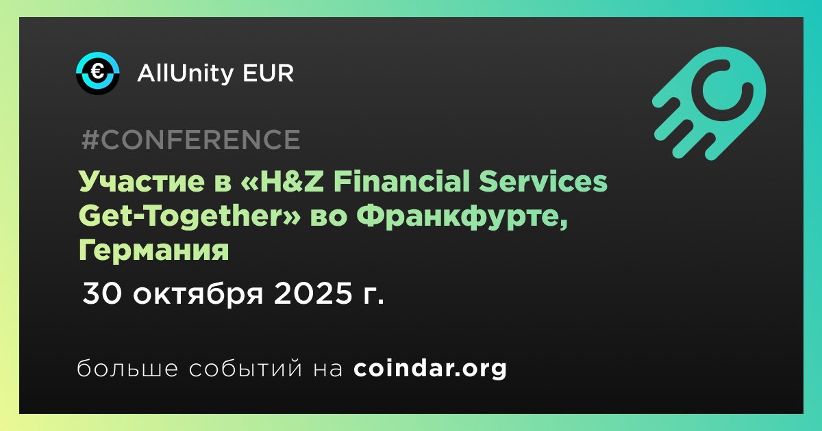 AllUnity EUR прмет участие в мероприятии «H&Z Financial Services Get-Together» во Франкфурте, 30 октября. Темы обсуждений включают в себя стабильность криптовалют, регуляторные нововведения и применение в корпоративной финансовой сфере.