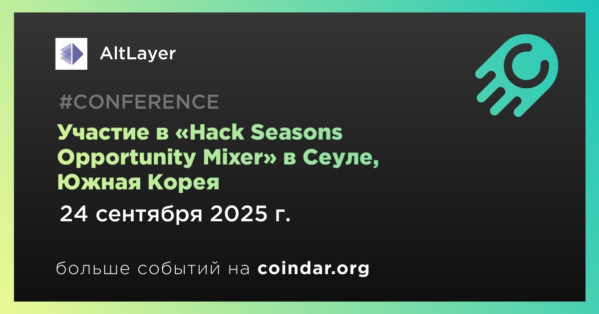 AltLayer примет участие в мероприятии под названием «Hack Seasons Opportunity Mixer», которое является частью «Korea Blockchain Week». Данное событие запланировано на 24 сентября и пройдет в Сеуле.