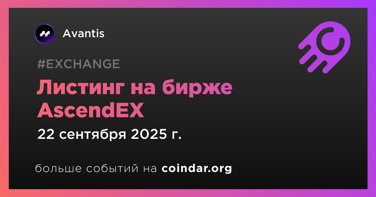 AscendEX проведет листинг Avantis в рамках торговой пары AVNT/USDT 22 сентября.